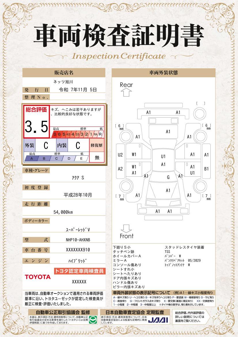 車両保証(アクア S:ネッツトヨタ旭川(株)ブルーゾーンかむい)