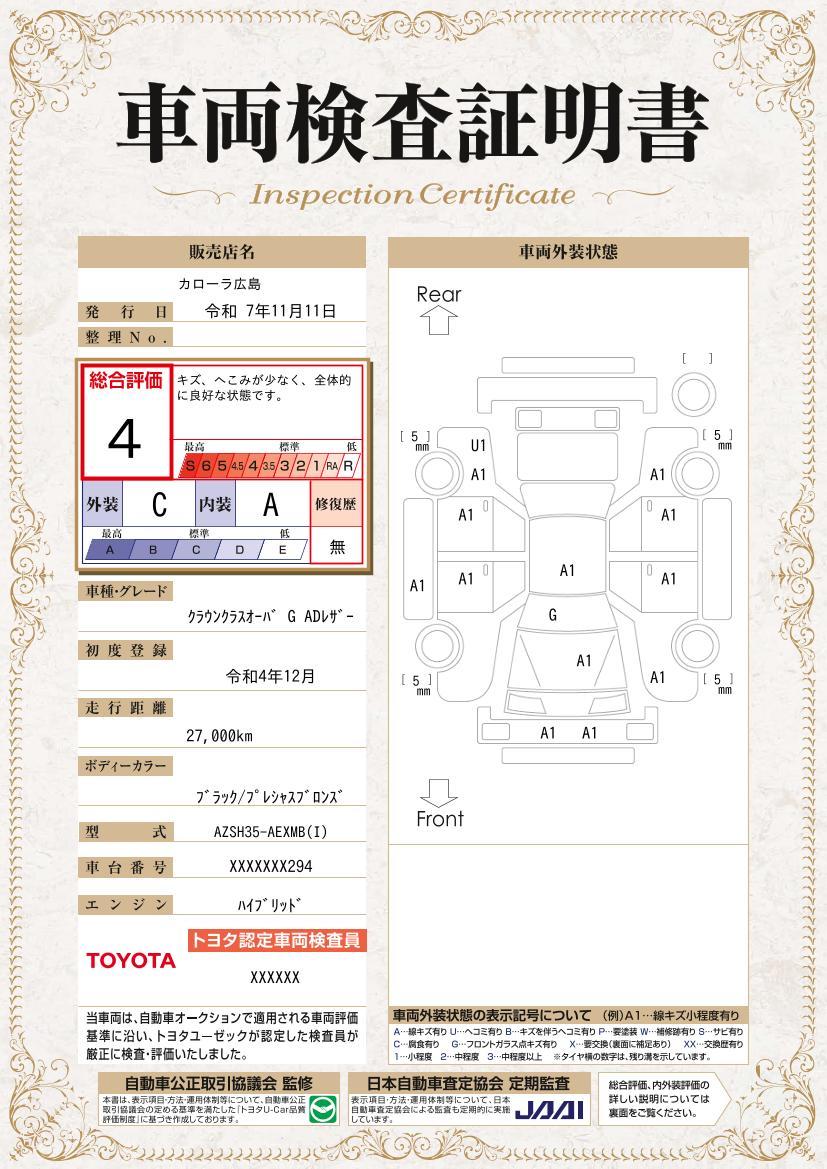 車両保証(クラウンクロスオーバー Gアドバンスド・レザーパッケージ:シャント広 トヨタカローラ広島(株) )