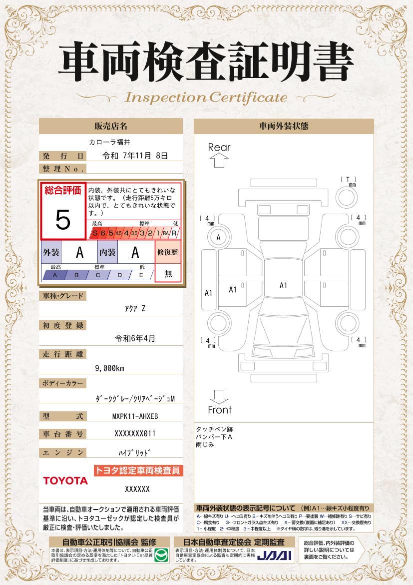 車両保証(アクア Z:トヨタカローラ福井 福井店)