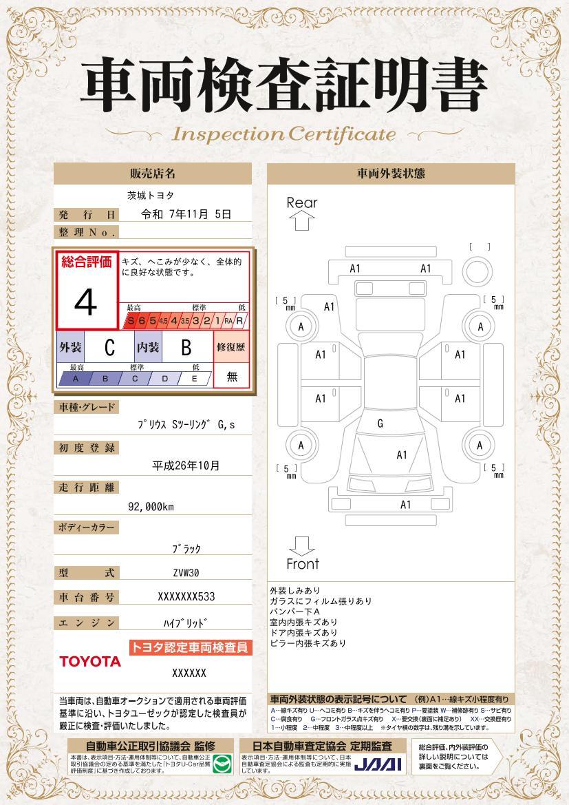 車両保証(プリウス Sツーリングセレクション・G’s:茨城トヨタ自動車(株) 水戸大洗インター店)