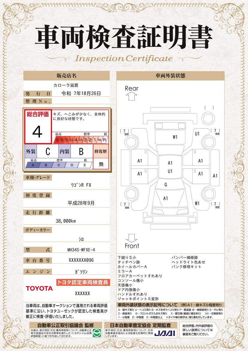 車両保証(ワゴンR FX:トヨタカローラ滋賀 U-BOOTH近江八幡)