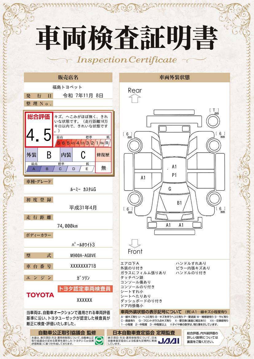 車両保証(ルーミー カスタムG:福島トヨペット(株) ふくしまU-Carセンター)