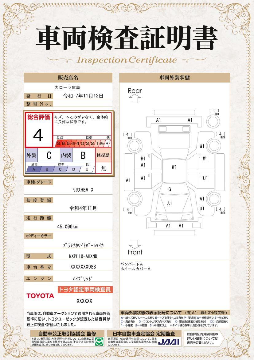 | 車両状態評価書 | ※クリックすると開きます![]() |