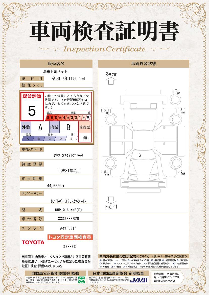 車両保証(アクア Sスタイルブラック:島根トヨペット(株) 安来店)