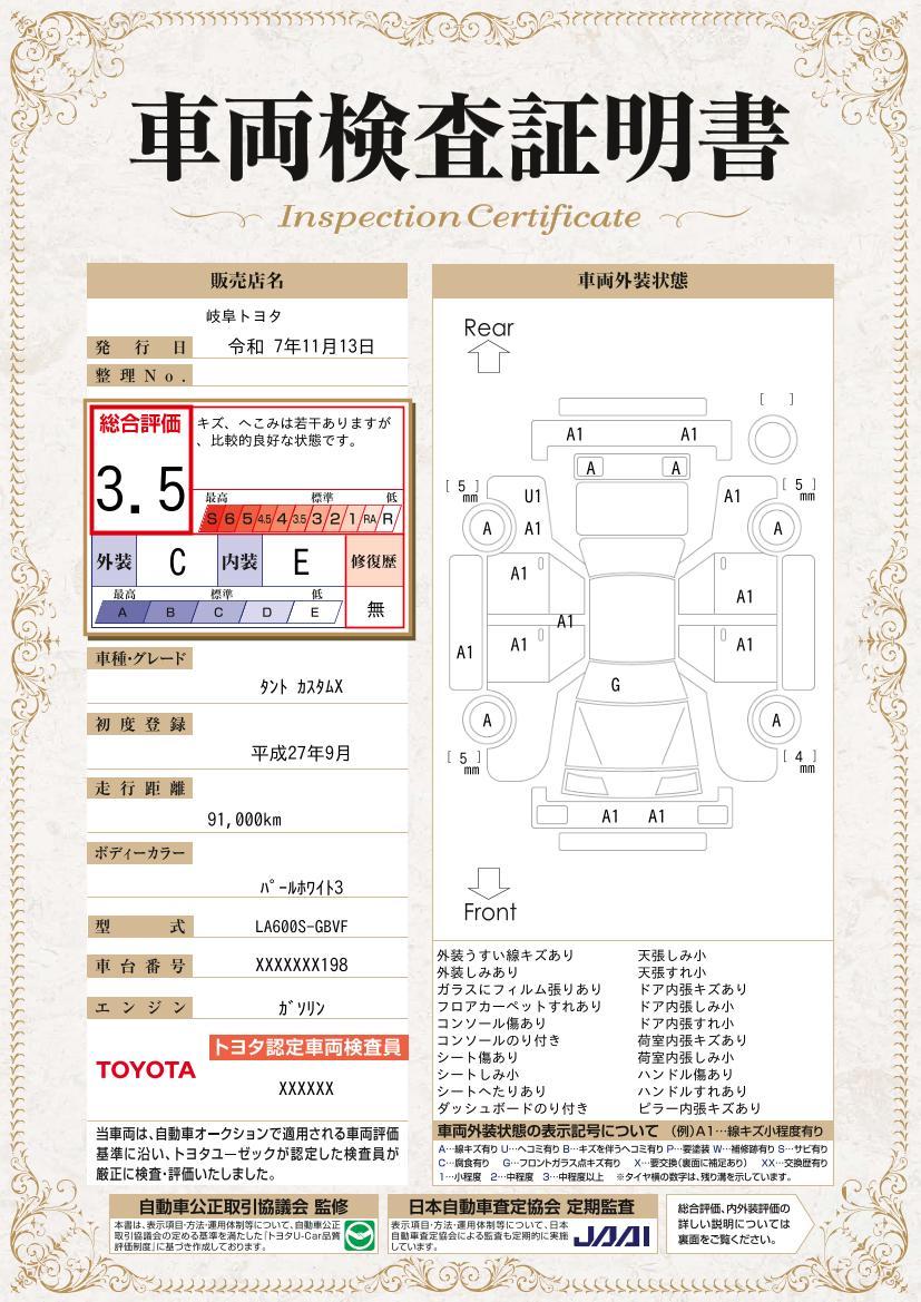 車両保証(タント カスタムX:岐阜トヨタ自動車 U-Car関稲口店)