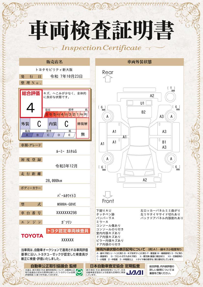 車両保証(ルーミー カスタムG:トヨタモビリティ新大阪株式会社U-Car Smart新大阪)