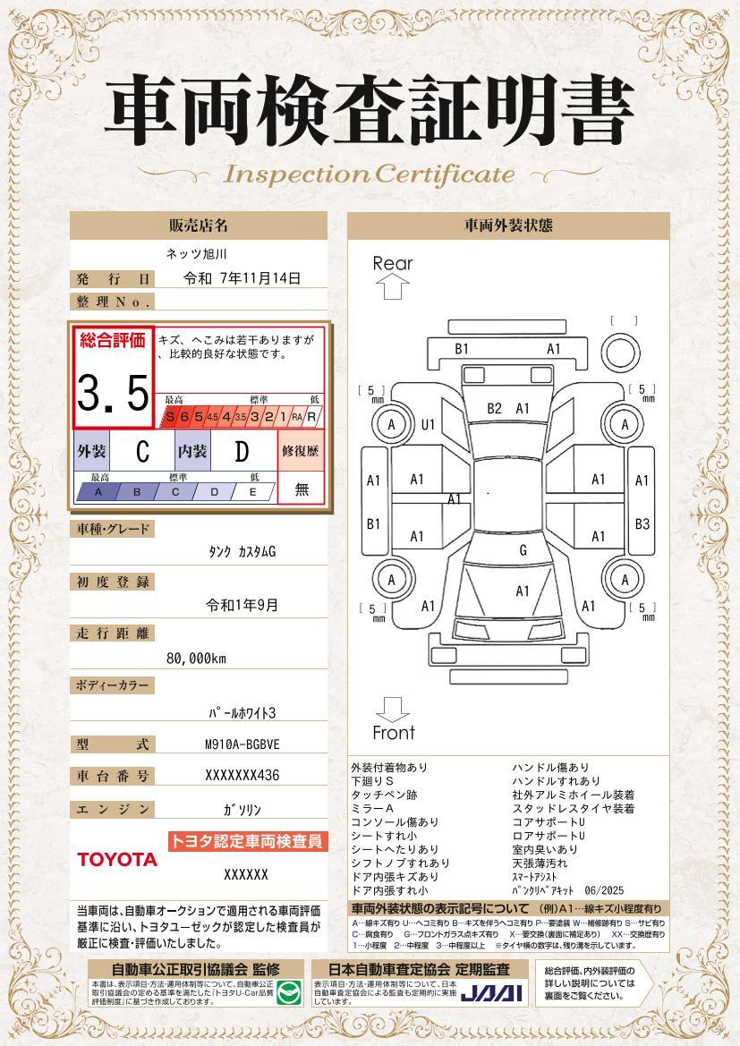 車両保証(タンク カスタムG:ネッツトヨタ旭川(株)ブルーゾーンかむい)