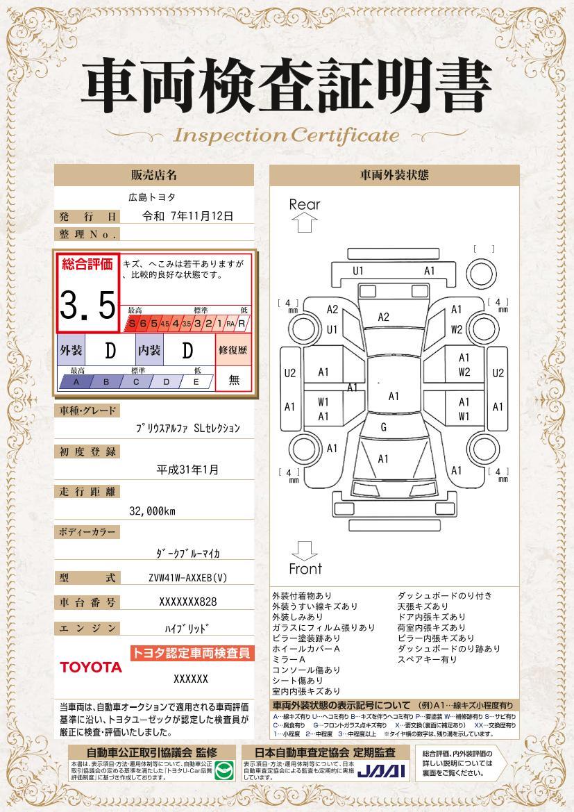 車両保証(プリウスアルファ S Lセレクション:広島トヨタ自動車 五日市店)