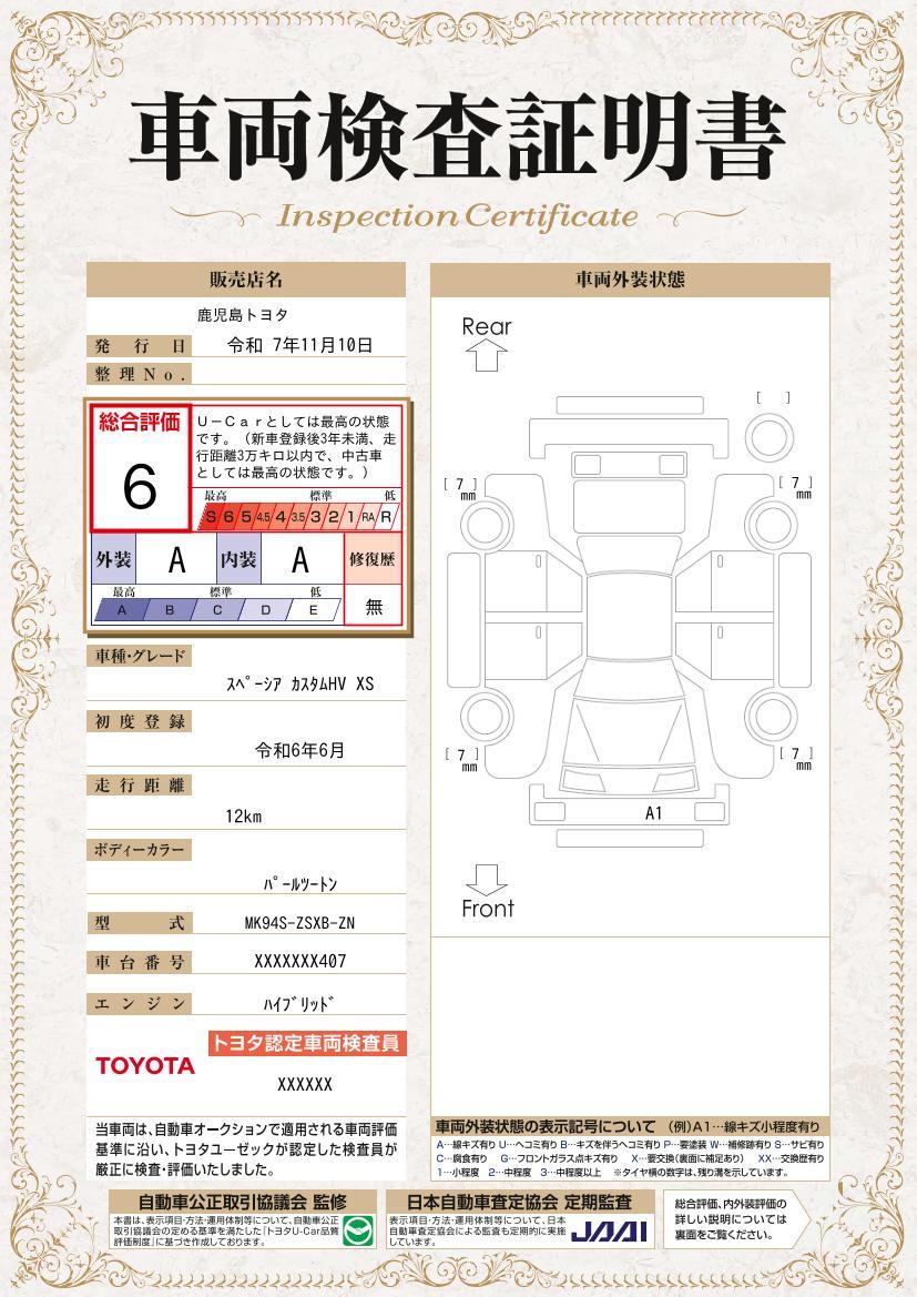 車両保証(スペーシアカスタム ハイブリッドXS:鹿児島トヨタ自動車(株)グリーンフィールド隼人)