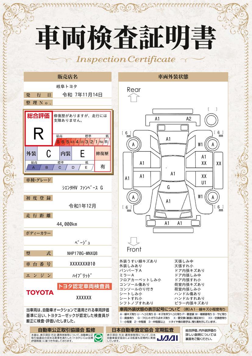 車両保証(シエンタ ハイブリッド ファンベースG:岐阜トヨタ自動車 U-Car多治見店)