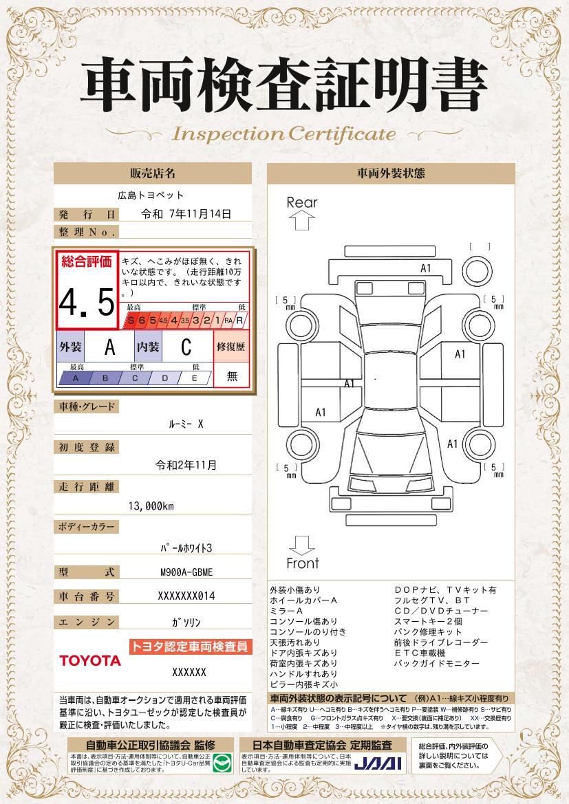 車両保証(ルーミー X:広島トヨペット(株)ALALやぎ)
