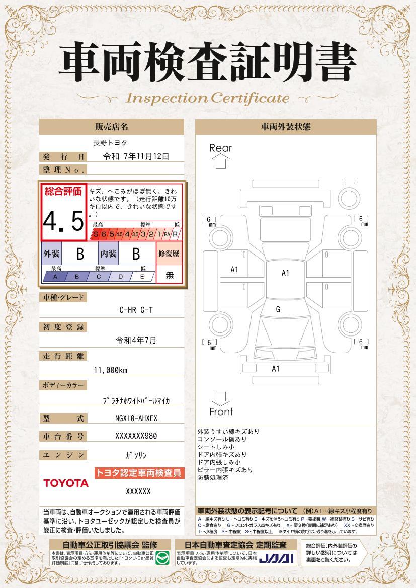 車両保証(C-HR G-T:長野トヨタ自動車(株) 諏訪店)