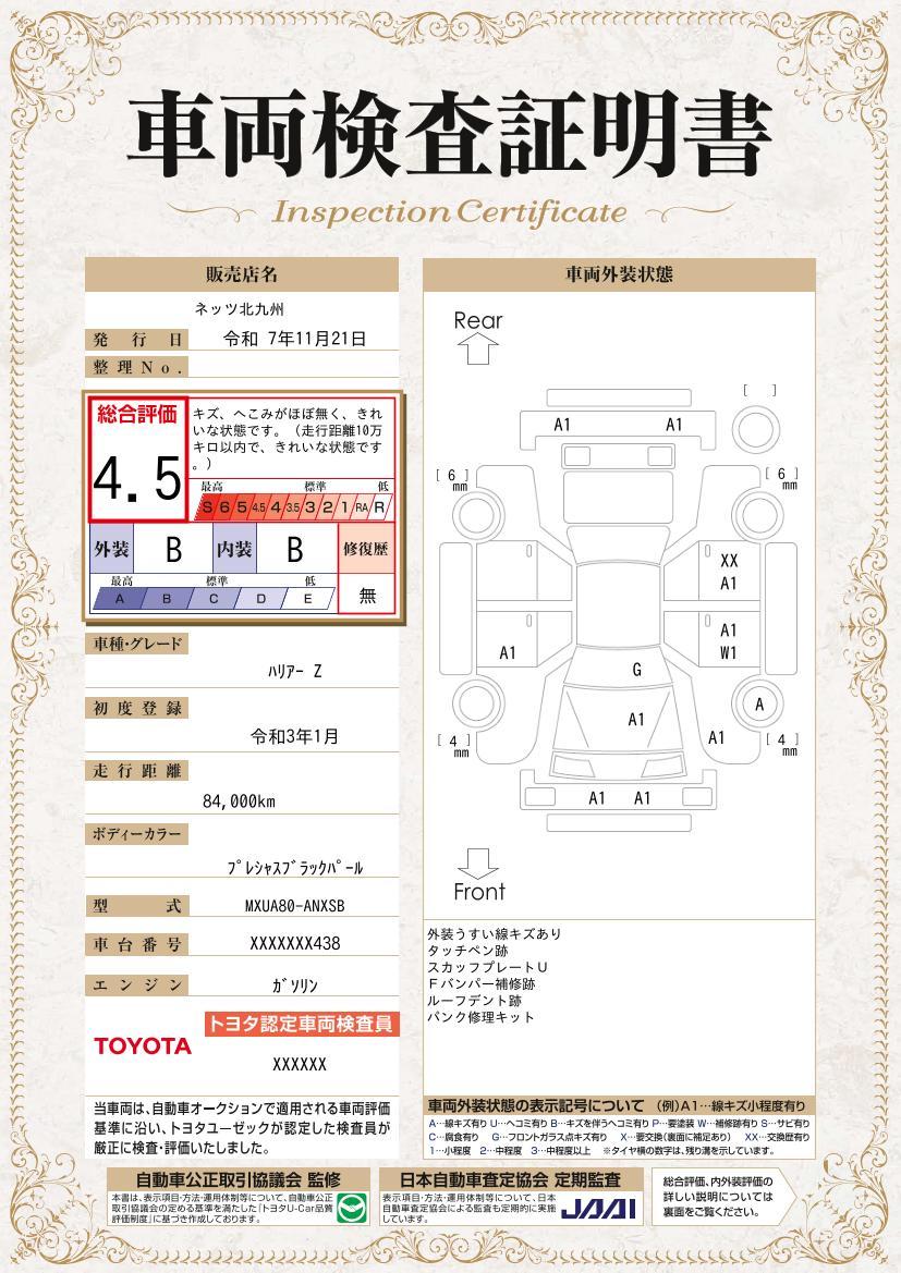 車両保証(ハリアー Z:ネッツトヨタ北九州 鞍手商品化センター)