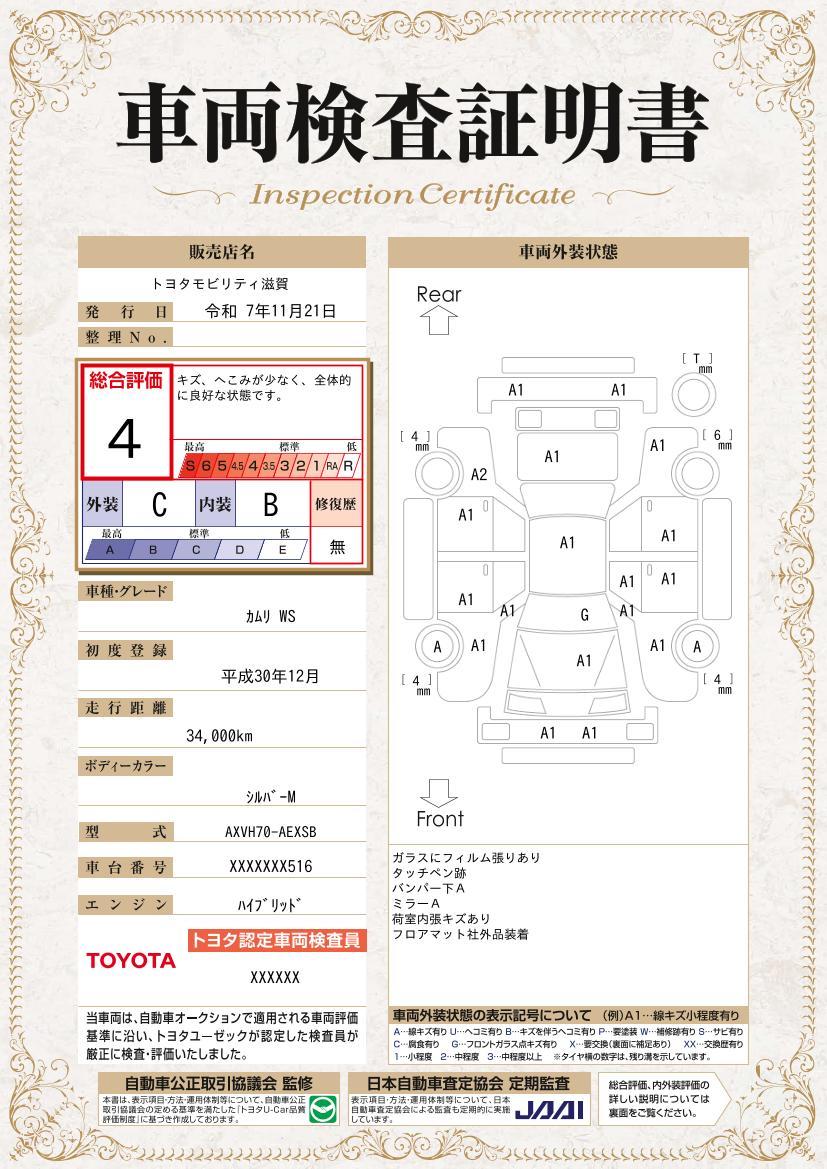 車両保証(カムリ WS:トヨタモビリティ滋賀(株)ウエルコム栗東U-CarLAND)