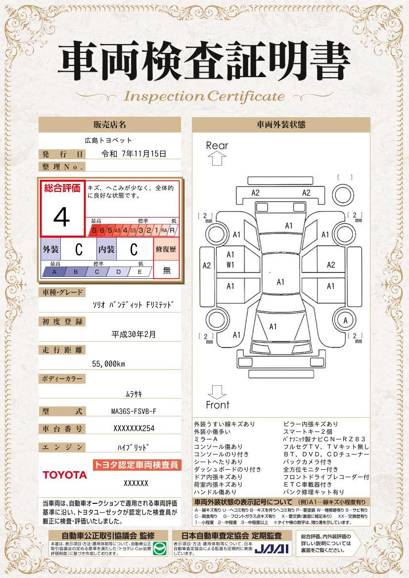 車両保証(ソリオバンディット Fリミテッド:広島トヨペット(株)ALALいのくち)