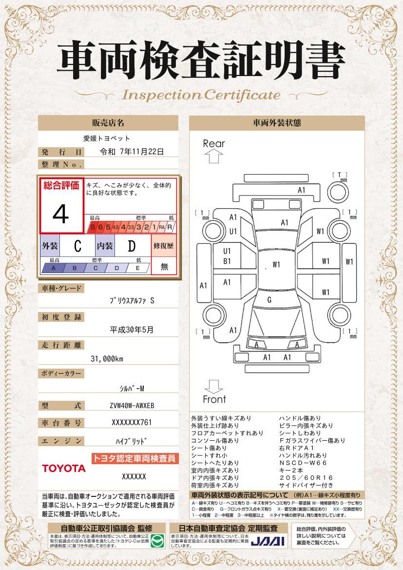 車両保証(プリウスα S:愛媛トヨペット(株) 小坂店)