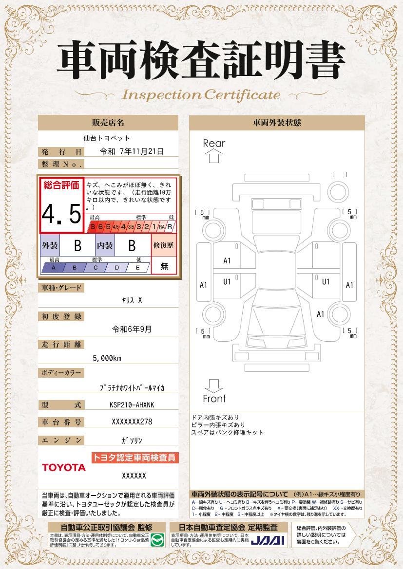 車両保証(ヤリス X:仙台トヨペット(株) 宮城野中古車センター)