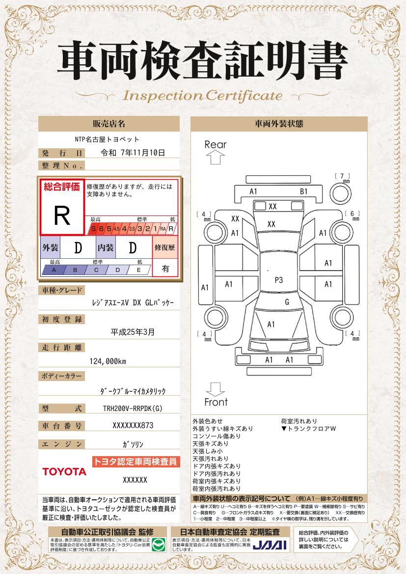 | 車両状態評価書 | ※クリックすると開きます![]() |