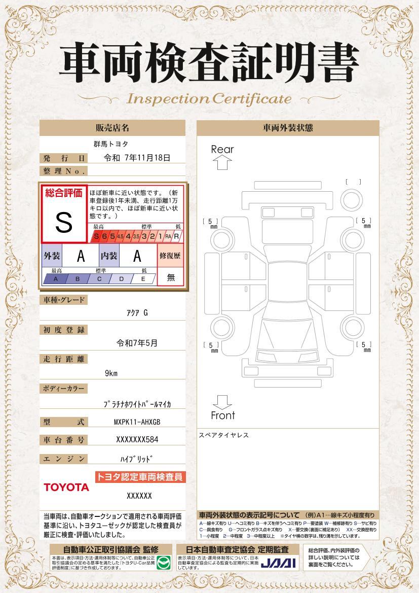車両保証(アクア G:群馬トヨタ自動車株式会社 U.Park高崎島野店)