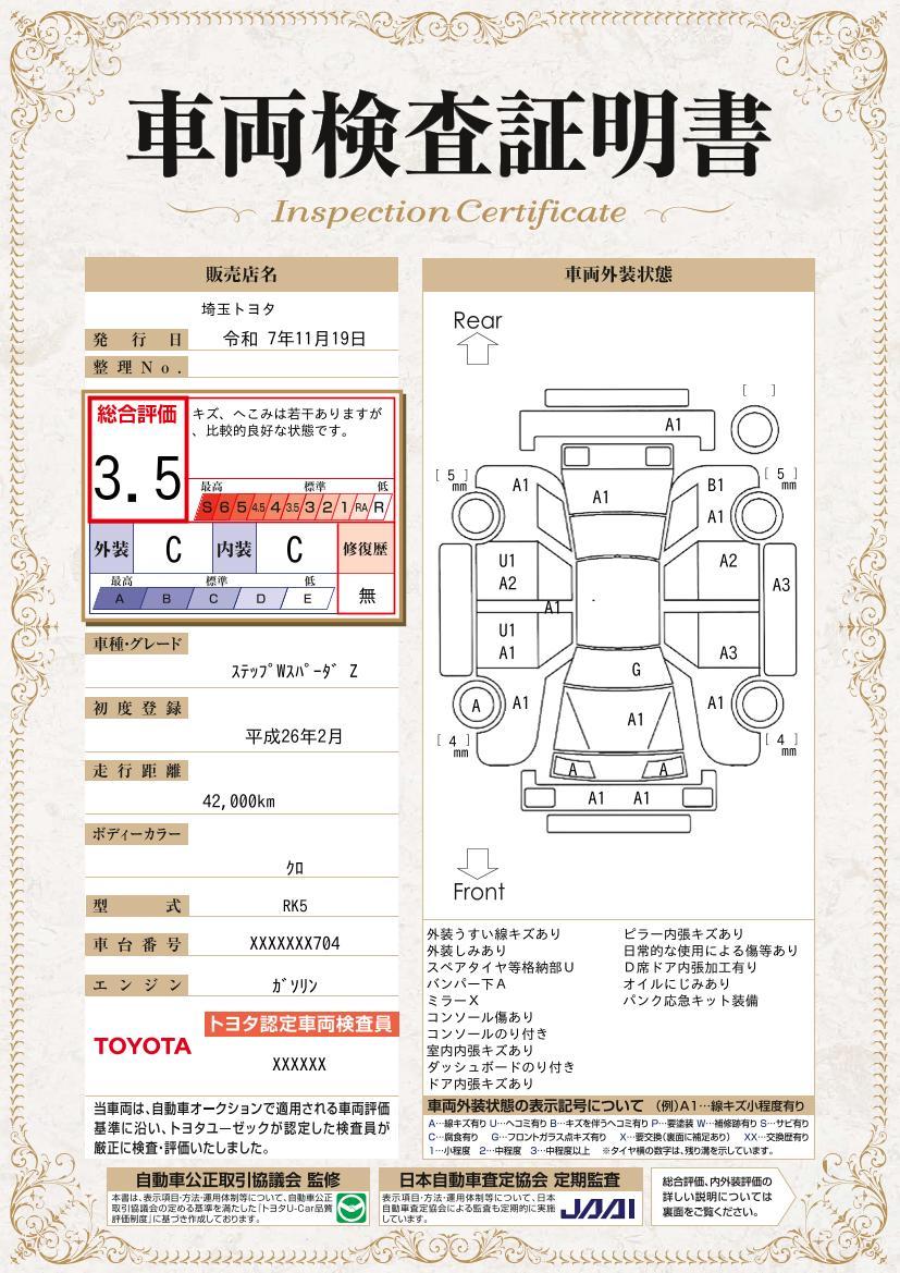 車両保証(ステップワゴンスパーダ Z:埼玉トヨタ自動車(株) 川越マイカーセンター)