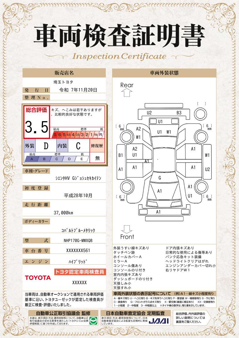 車両保証(シエンタ その他/独自仕様/表記なし:埼玉トヨタ自動車(株) 川越マイカーセンター)
