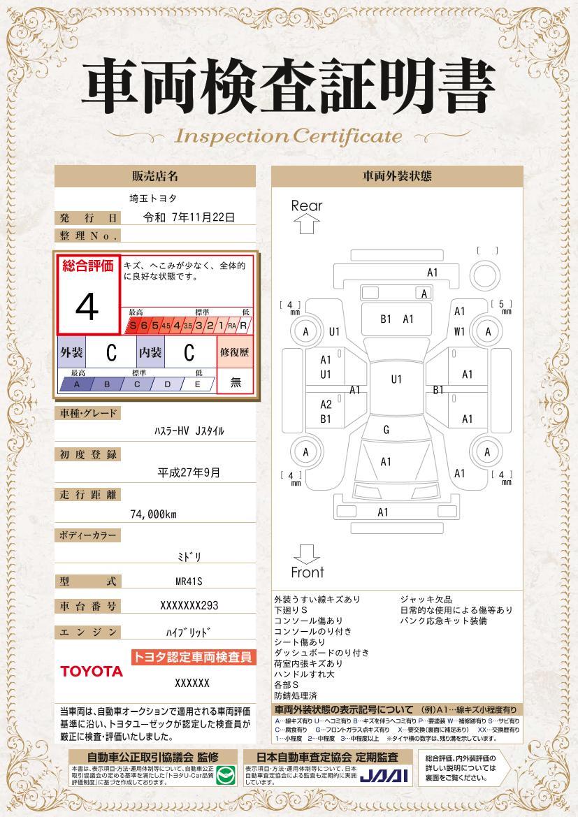 車両保証(ハスラー Jスタイル:埼玉トヨタ自動車(株) 秩父店)