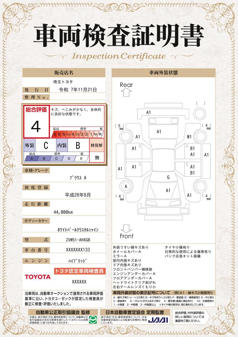 車両保証(プリウス A:埼玉トヨタ自動車(株) 越谷マイカーセンター)