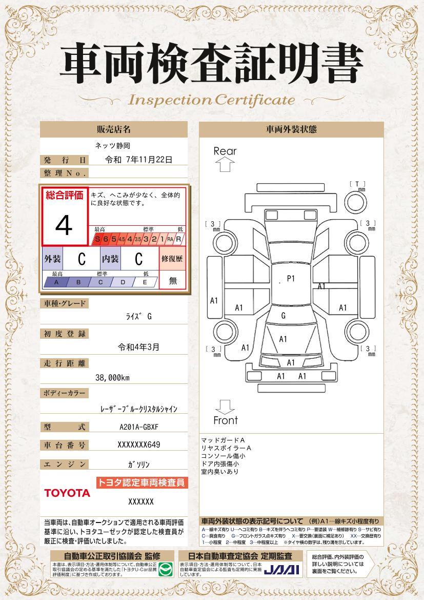 車両保証(ライズ G:ネッツトヨタ静岡(株)U-TOWN三島)