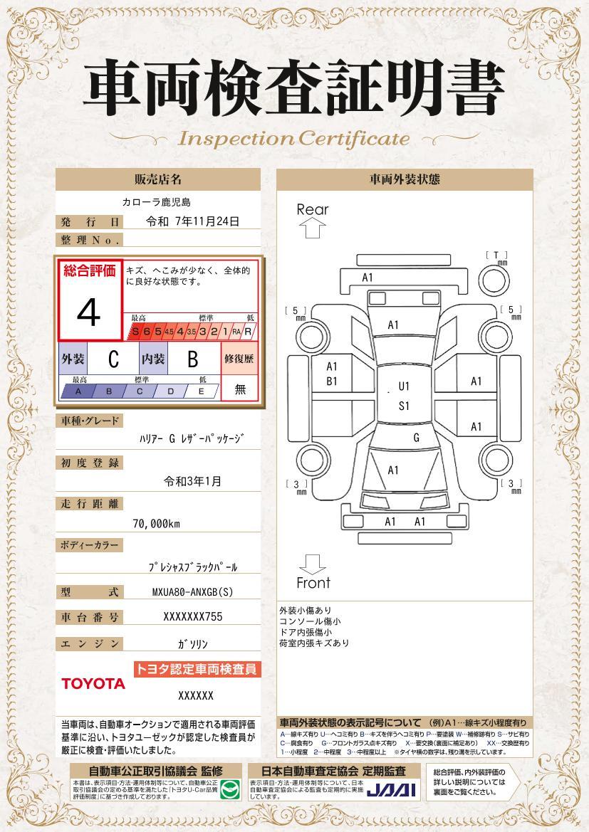 車両保証(ハリアー G レザーパッケージ:トヨタカローラ鹿児島(株)郡元マイカーセンター)