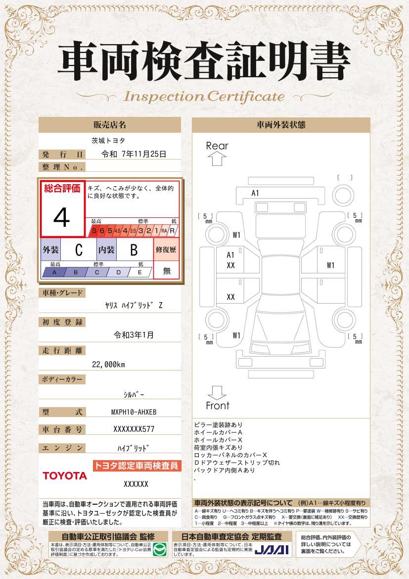 車両保証(ヤリス ハイブリッドZ:茨城トヨタ自動車(株) 土浦店)