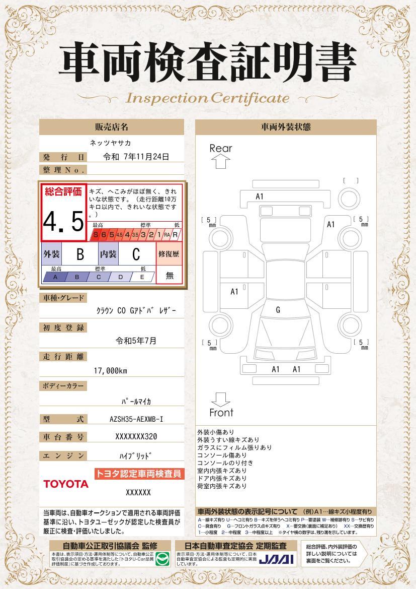 車両状態(クラウンクロスオーバー Gアドバンスド・レザーパッケージ)