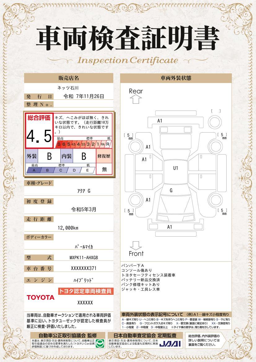 車両保証(アクア G:ネッツトヨタ石川(株) U-Carシャンツェ鞍月)