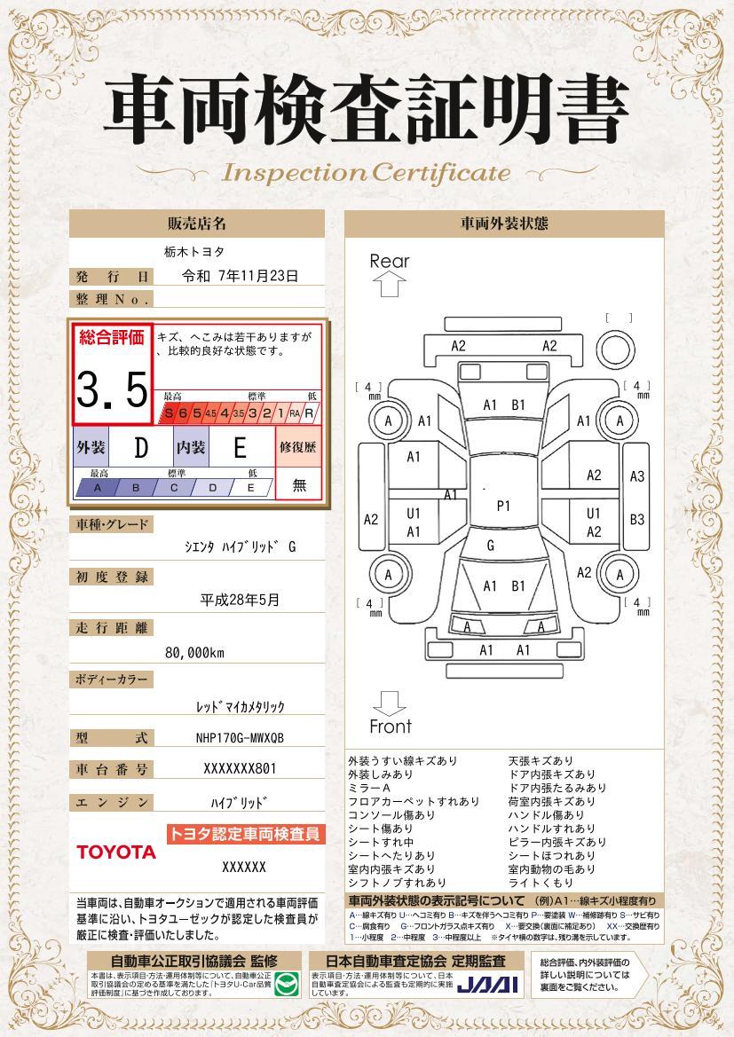 車両保証(シエンタ ハイブリッドG:栃木トヨタ自動車(株)U-Carつるた店)
