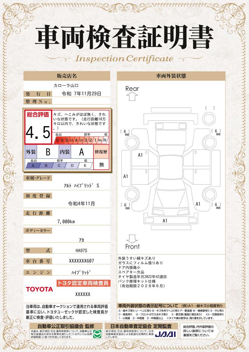 車両保証(アルト ハイブリッドS:トヨタカローラ山口(株) 徳山マイカーセンター)