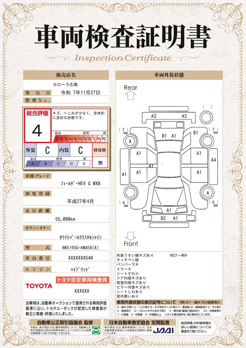 車両保証(カローラフィールダー ハイブリッドG ダブルバイビー:シャント広島本店 トヨタカローラ広島㈱)