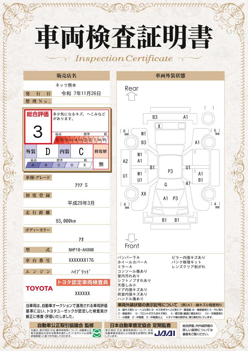 車両保証(アクア S:ネッツトヨタ熊本株式会社 U-Car TOWN川尻店)