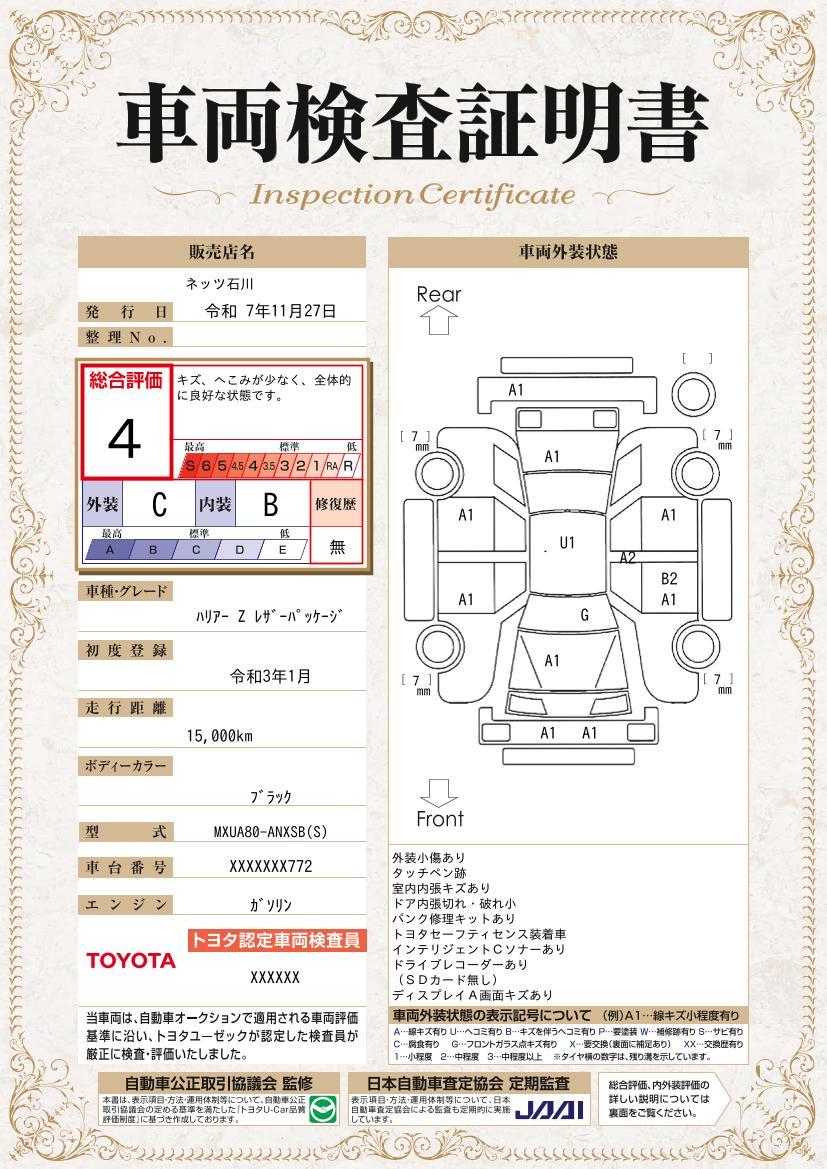 車両保証(ハリアー Z レザーパッケージ:ネッツトヨタ石川(株) U-Carシャンツェ鞍月)