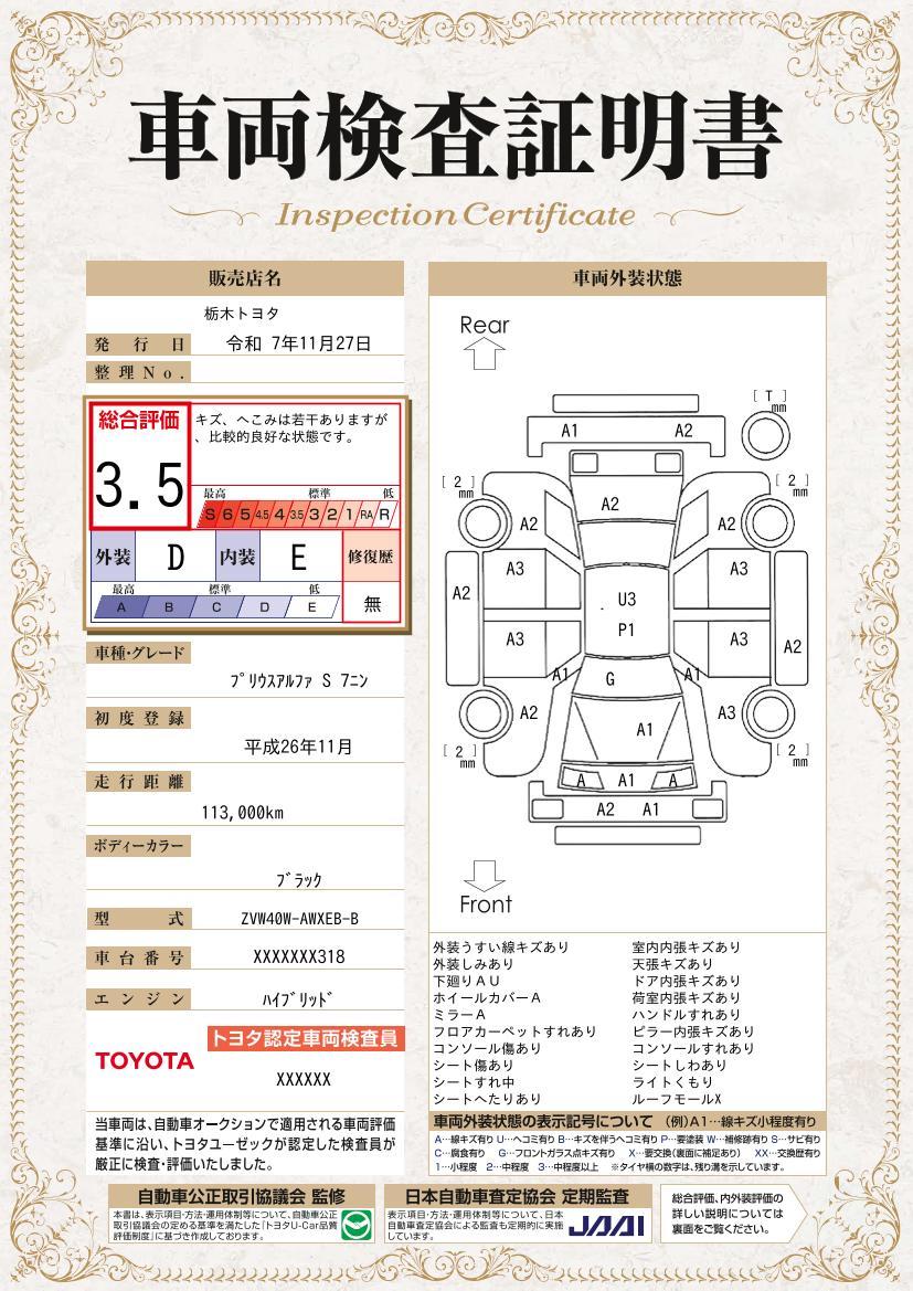 車両保証(プリウスα S:栃木トヨタ自動車(株)U-Car小山羽川店)