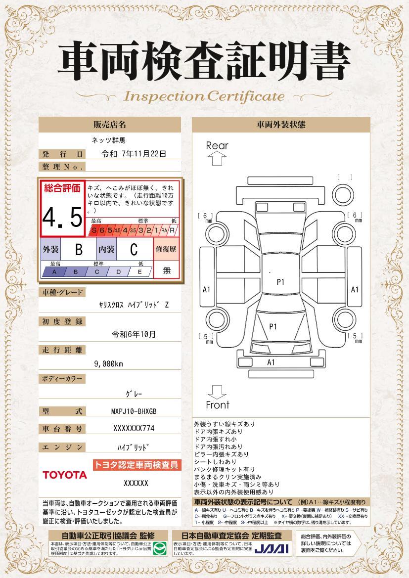 車両保証(ヤリスクロス ハイブリッドZ:ネッツトヨタ群馬株式会社 太田やぶづかインター店)