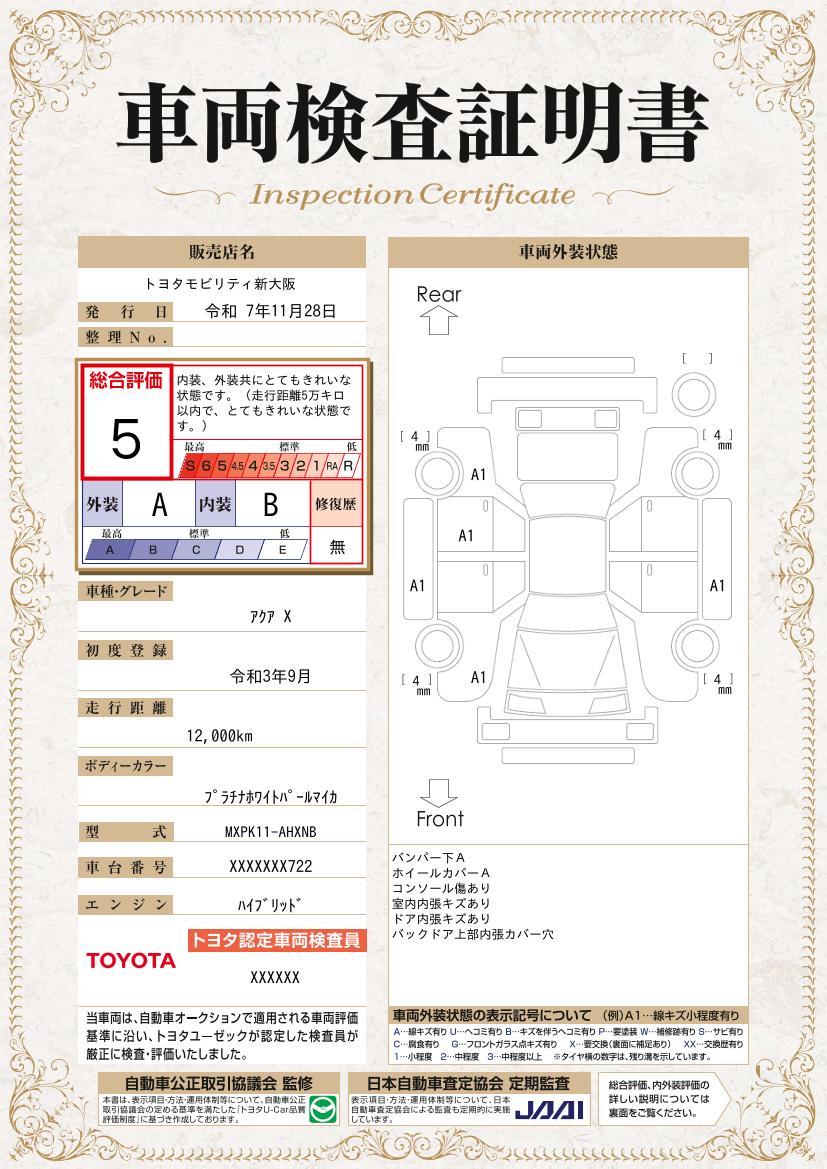 車両保証(アクア X:トヨタモビリティ新大阪(株)U-Car名神茨木店)