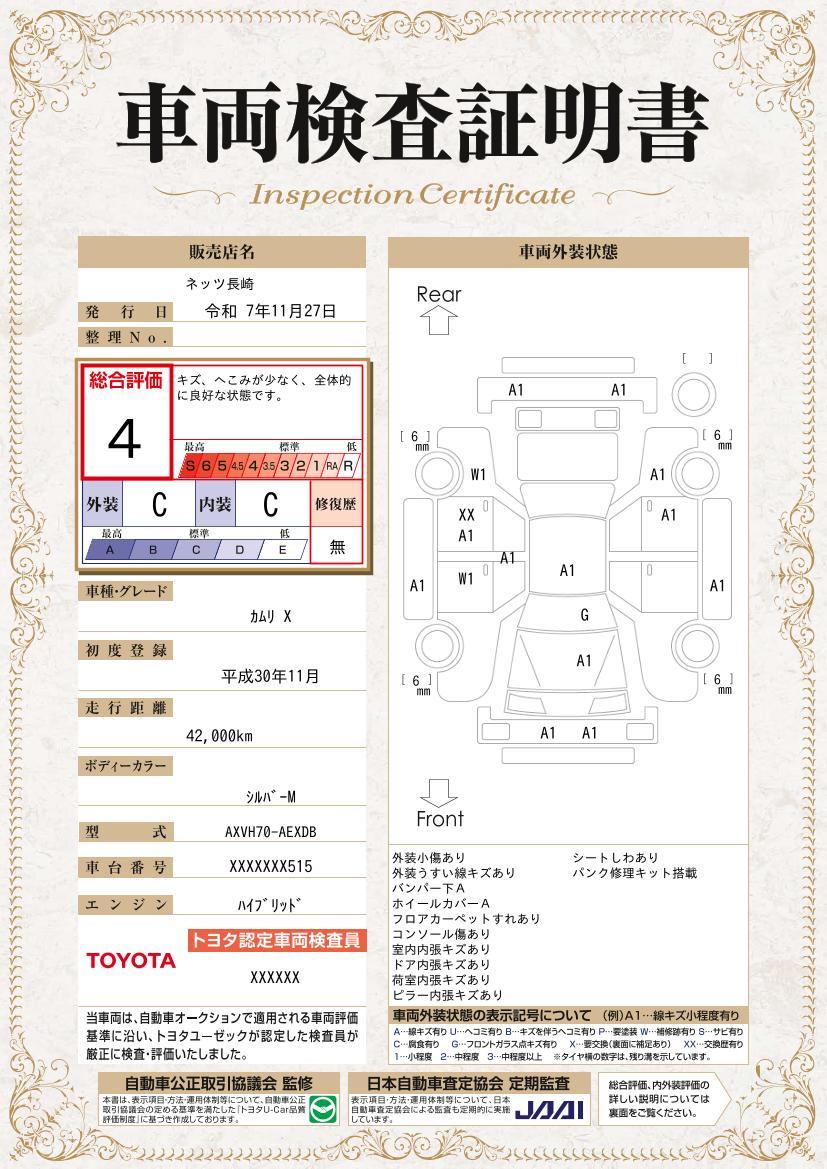 車両保証(カムリ X:ネッツトヨタ長崎(株) ユーカー時津打坂)
