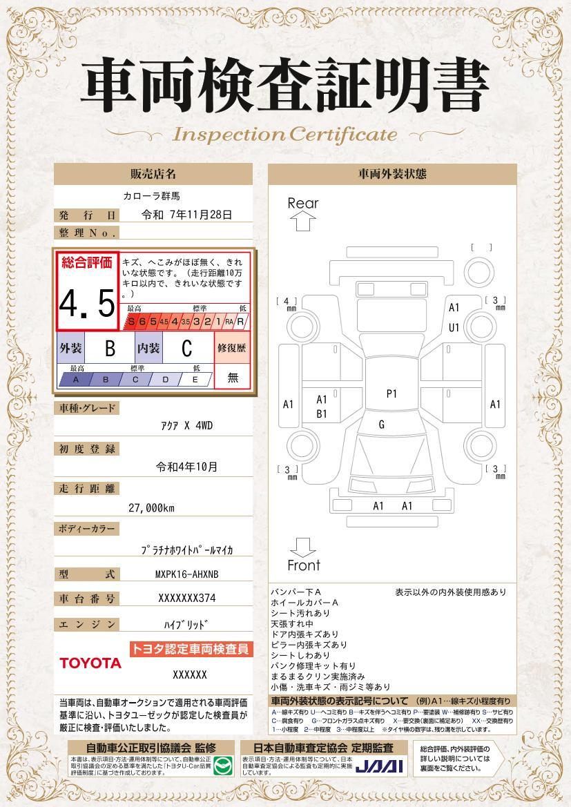 車両保証(アクア X:トヨタカローラ群馬株式会社 沼田店)