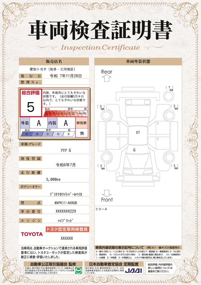 車両保証(アクア G:愛知トヨタ 東刈谷マイカーセンター)