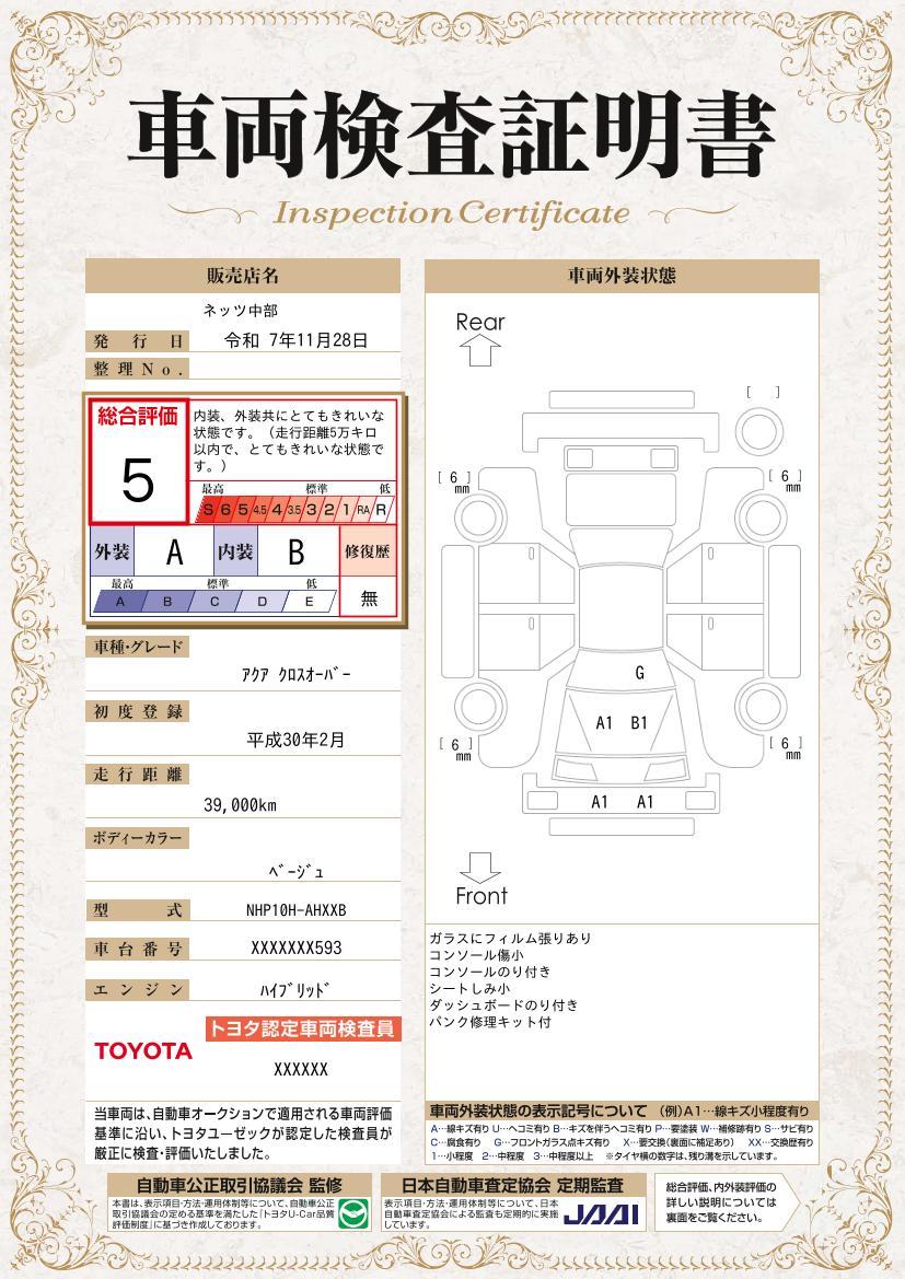 車両保証(アクア クロスオーバー:ネッツトヨタ中部 U-Car日進中央)