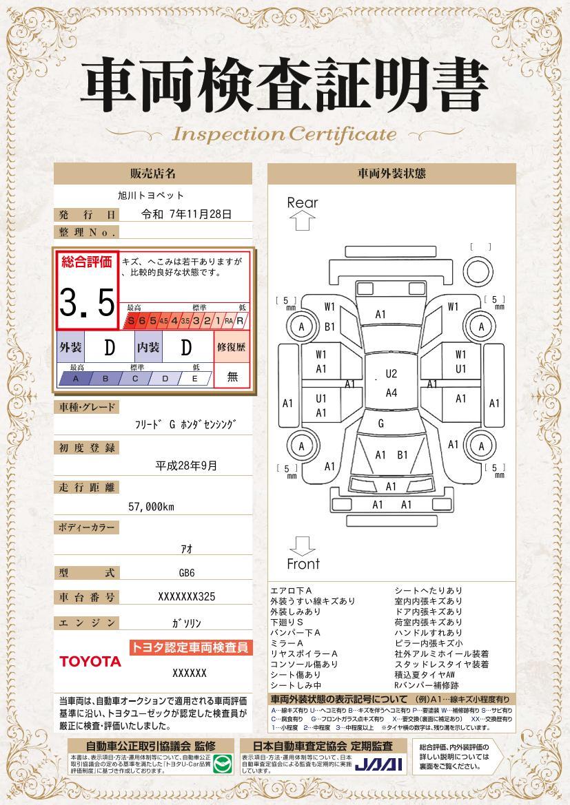 車両保証(フリード G・ホンダセンシング:旭川トヨペット(株)富良野店)