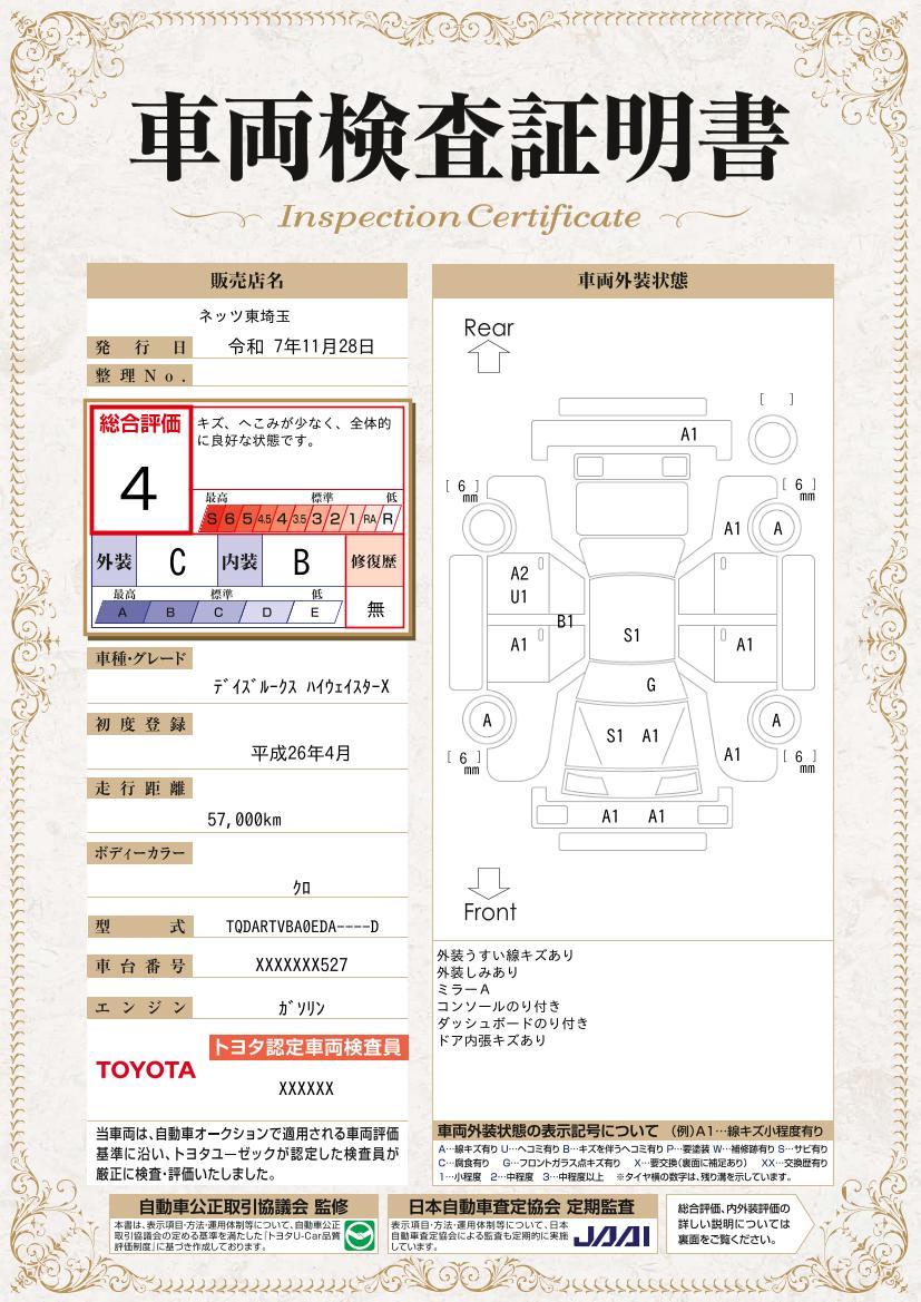 | 車両状態評価書 | ※クリックすると開きます![]() |