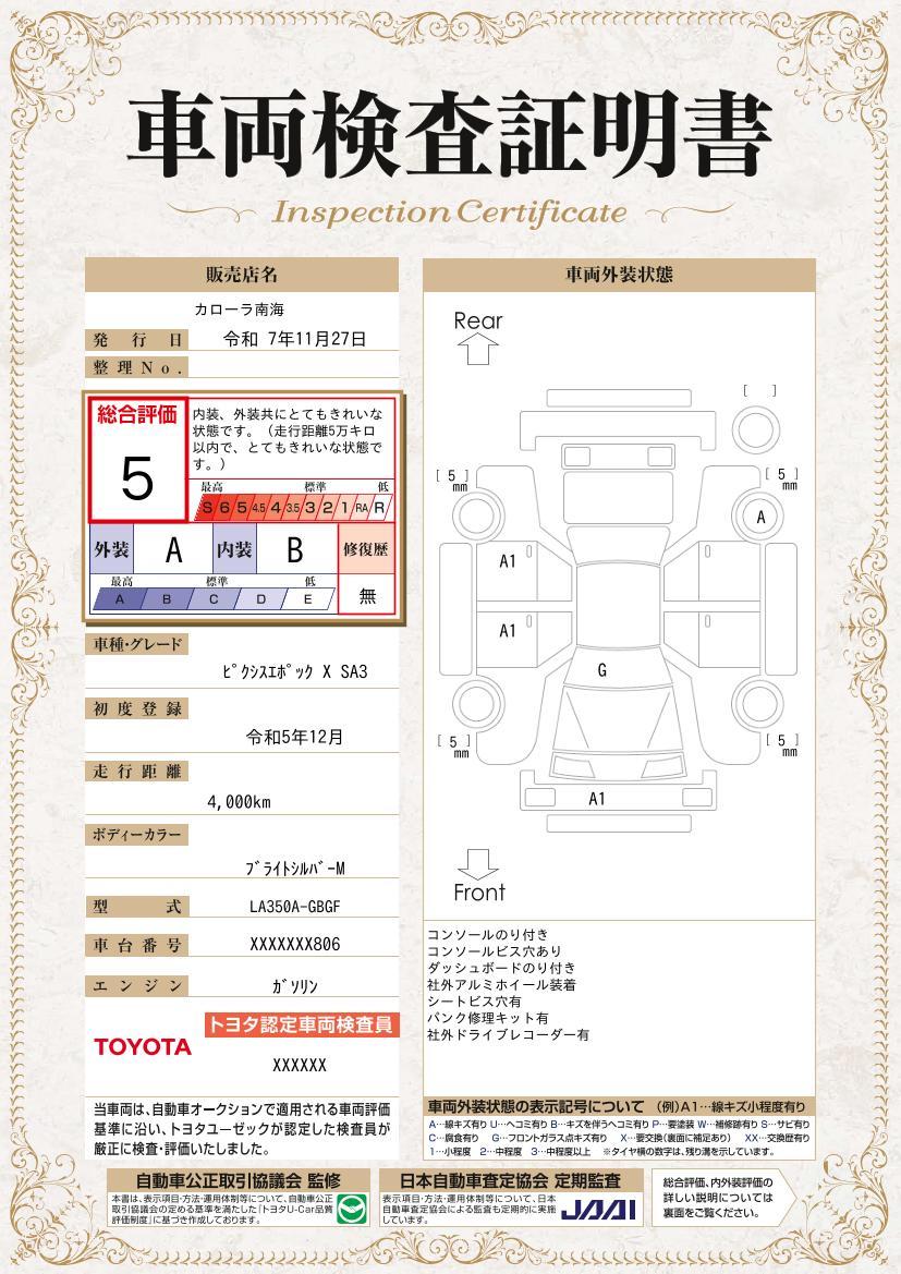 車両保証(ピクシスエポック X SAIII:トヨタカローラ南海株式会社 金岡プラザ)