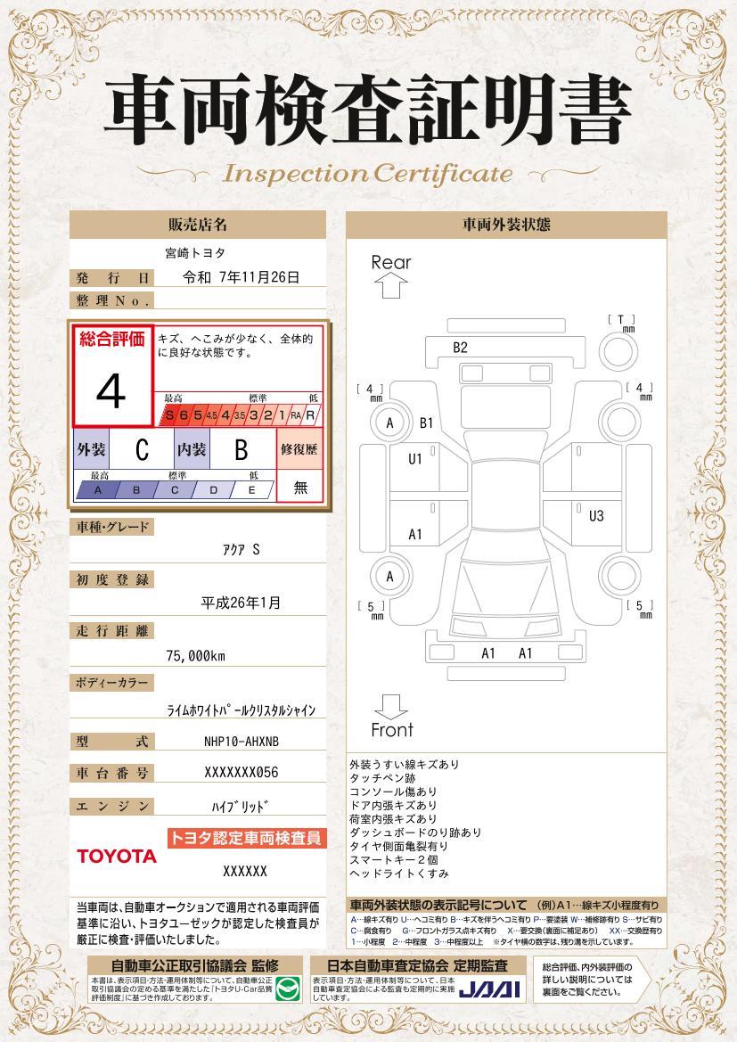 車両保証(アクア S:宮崎トヨタ自動車株式会社 ネッツ宮崎花ヶ島マイカーセンター)