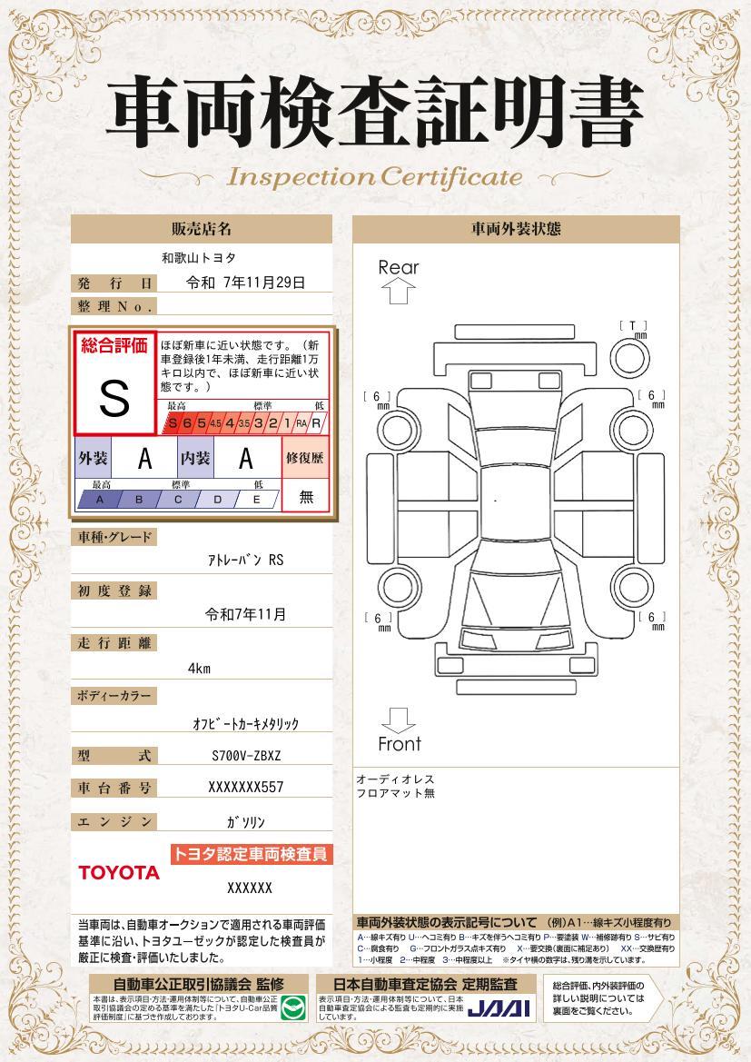 | 車両状態評価書 | ※クリックすると開きます![]() |