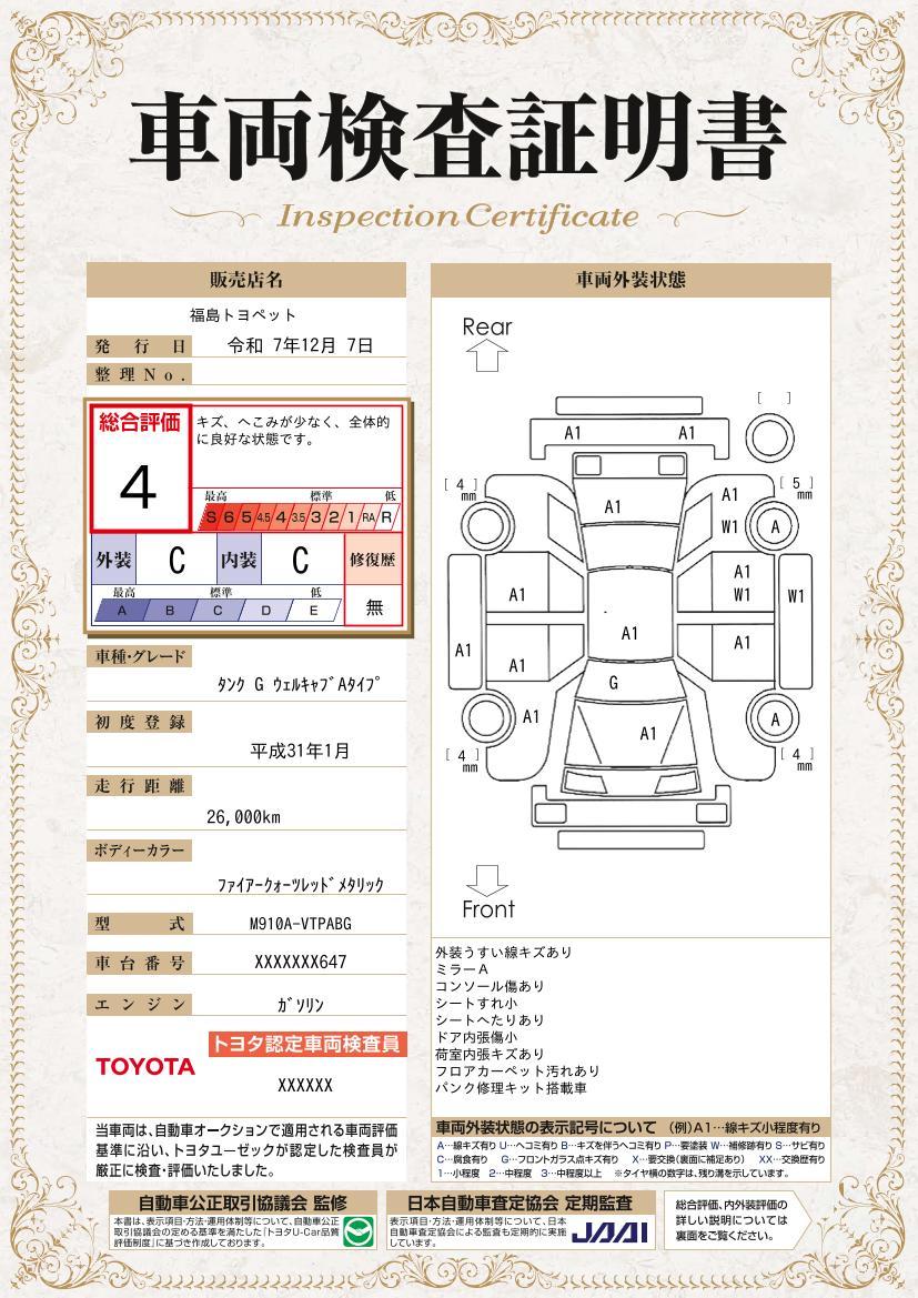 車両保証(タンク その他:福島トヨペット(株) オンリーユー)